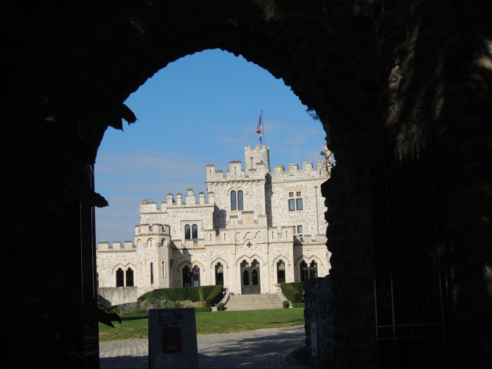 On l'a aperçu en arrivant, posé au milieu d'un écrin de verdure. Il y avait un drapeau bicolore, moitié français, moitié anglais, qui a piqué ma curiosité. C'est qu'ici, l'histoire est partagée : le château est un symbole de l'amitié franco-britannique, notamment à travers des échanges culturels réguliers. D'ailleurs, il fait partie du Centre culturel de l'Entente cordiale, installé là depuis 2010.