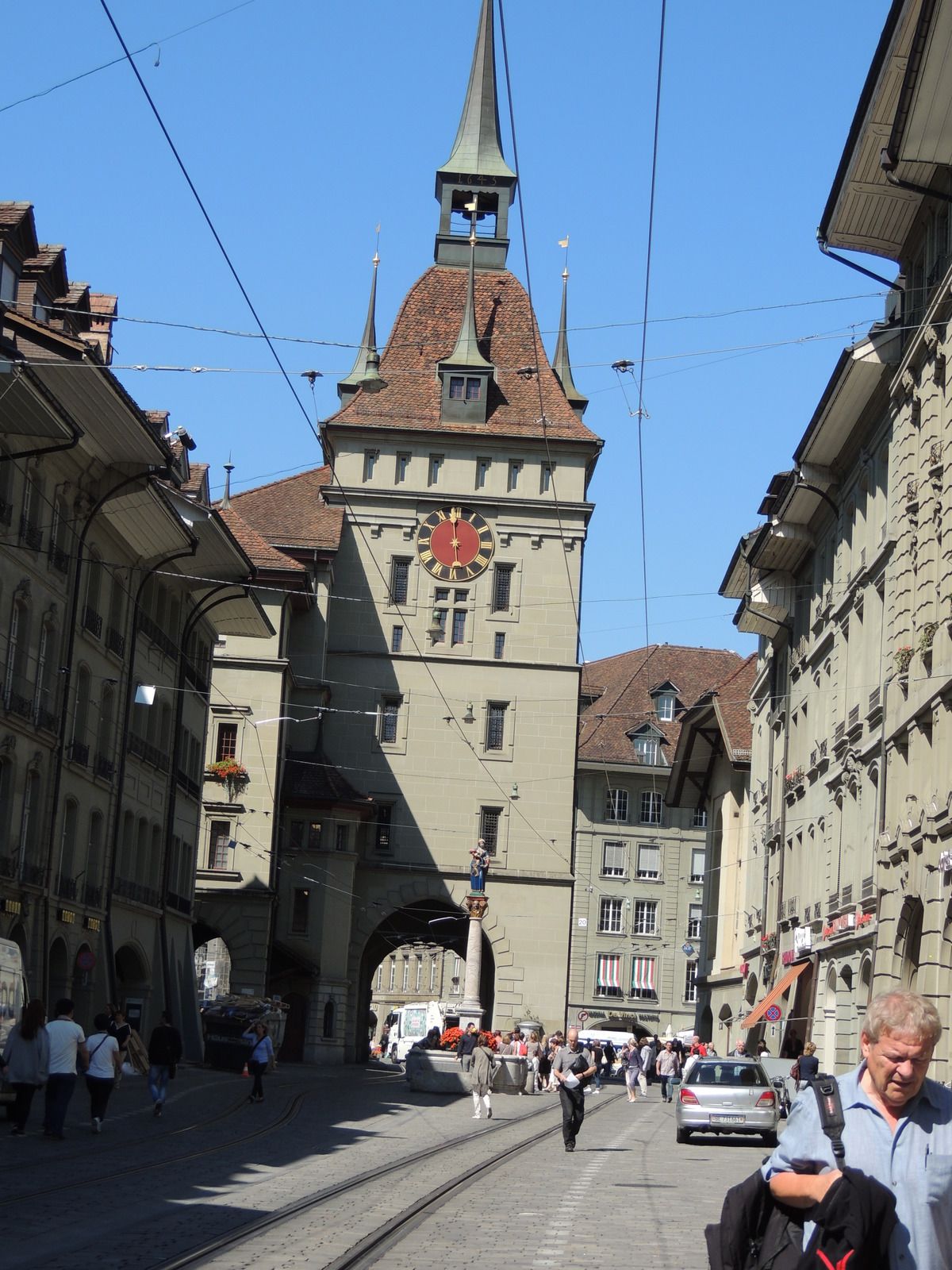 La tour de l'horloge, qui était à l'origine la porte ouest de Berne (1191-1256), est un repère important. Elle évoque l'horloge astronomique de l'hôtel de ville de Prague : la foule s'y presse pour observer la ronde des figures du carillon qui précède la sonnerie des cloches, 4 minutes avant l'heure fixe.