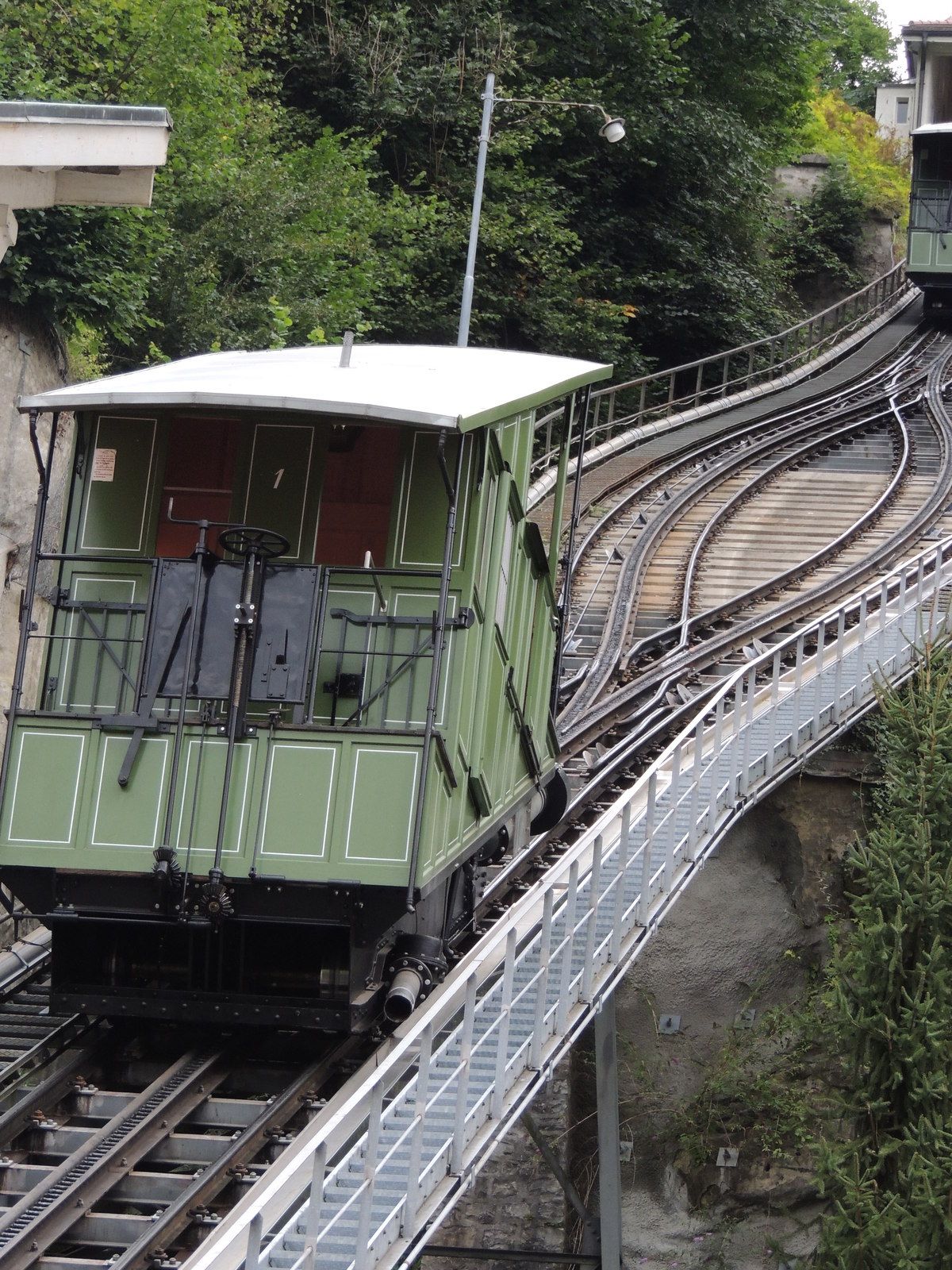 Et voilà ! Après une balade dans la Basse-ville, on remonte en prenant le fameux funiculaire de Fribourg, qui nous ramène en un éclair au centre-ville. Classé historiquement, il a la particularité de fonctionner… grâce aux eaux usées ! Celles-ci sont utilisées dans un système de contrepoids. Inauguré en 1899, ce funiculaire à crémaillère est plus que centenaire.