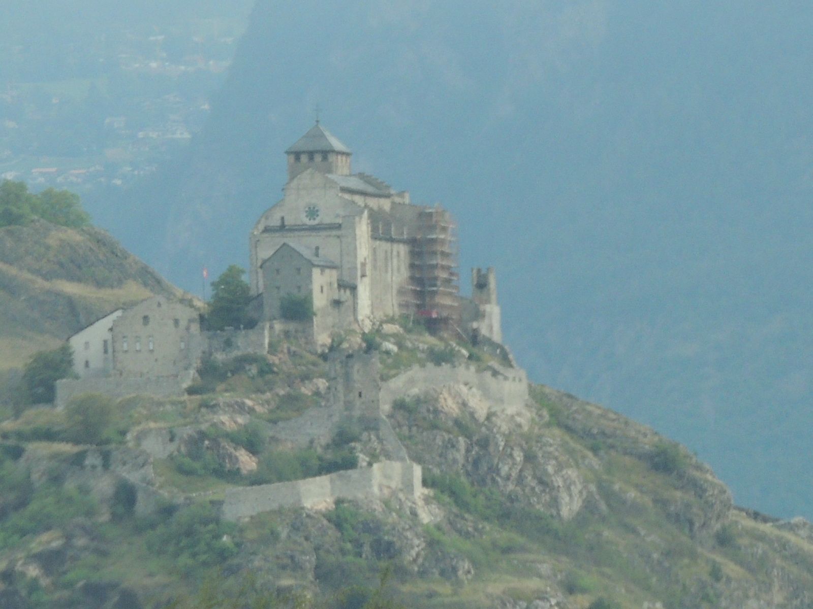 Nous commençons notre visite par le Tourbillon. Sympa la grimpette, heureusement qu'il y a des arrêts photos pour récupérer. Nous commençons par faire le tour du château, en passant par un petit chemin sur la droite de celui-ci qui amène à une plateforme, qui offre une magnifique vue sur la vallée du Rhône… A près quelques photos et après avoir contemplé le paysage nous redescendons par le même chemin et nous remontons cette fois, en direction de Valère.