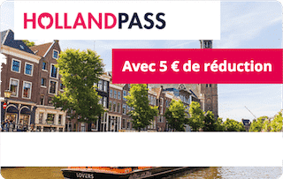 L' Holland Pass vous permet de recevoir : – 1 billet pour une croisière sur les canaux où l'accès au bus Hop-on Hop-off – 50% de réduction dans plus de 150 lieux à travers tout le pays (musées, attractions, restaurants, magasins). un guide détaillé ainsi qu'un plan d'Amsterdam, sont fournis avec le pass. l'Holland Pass s'achète en ligne. Il est valable un mois une fois la première utilisation effectuée.