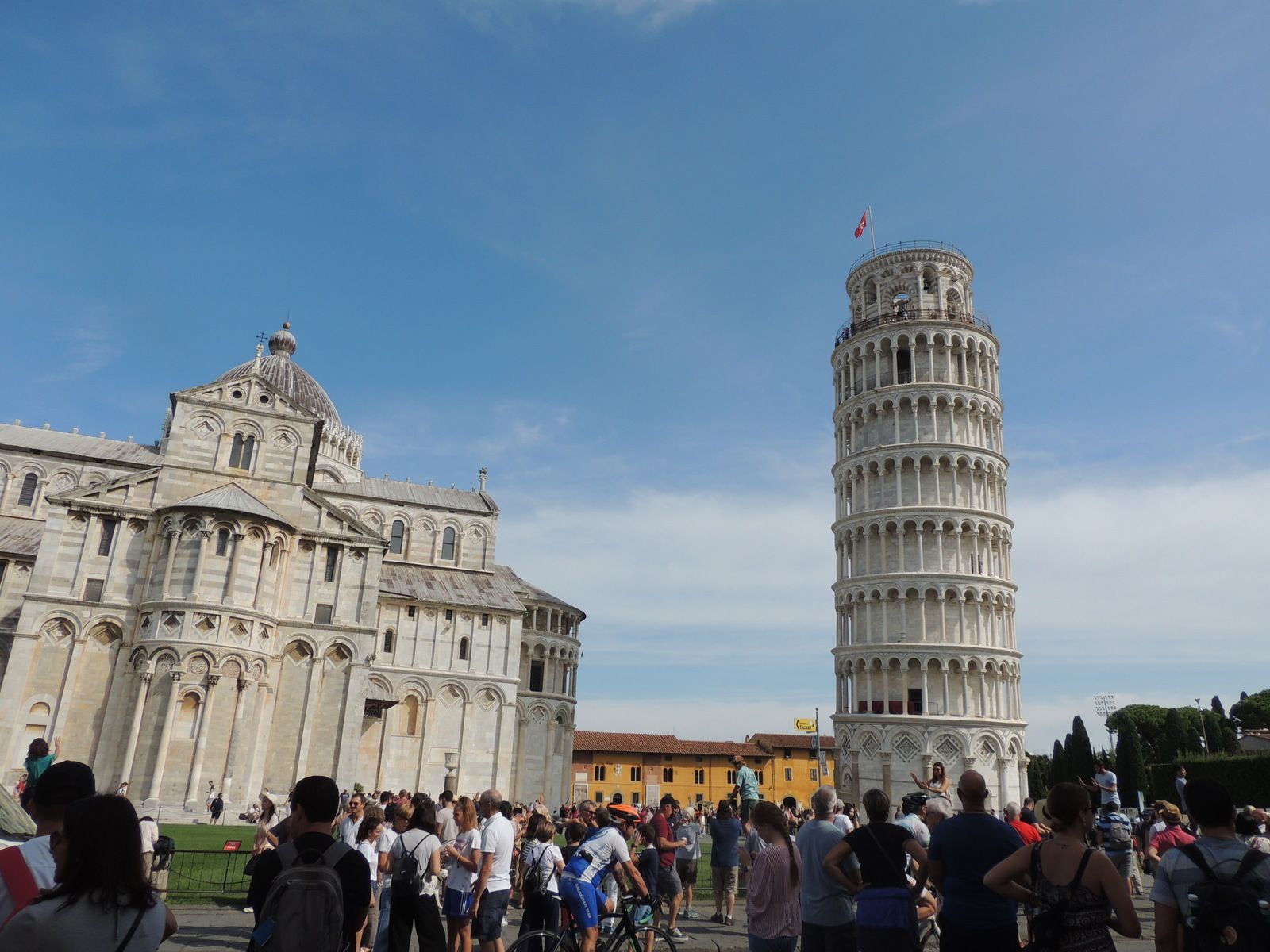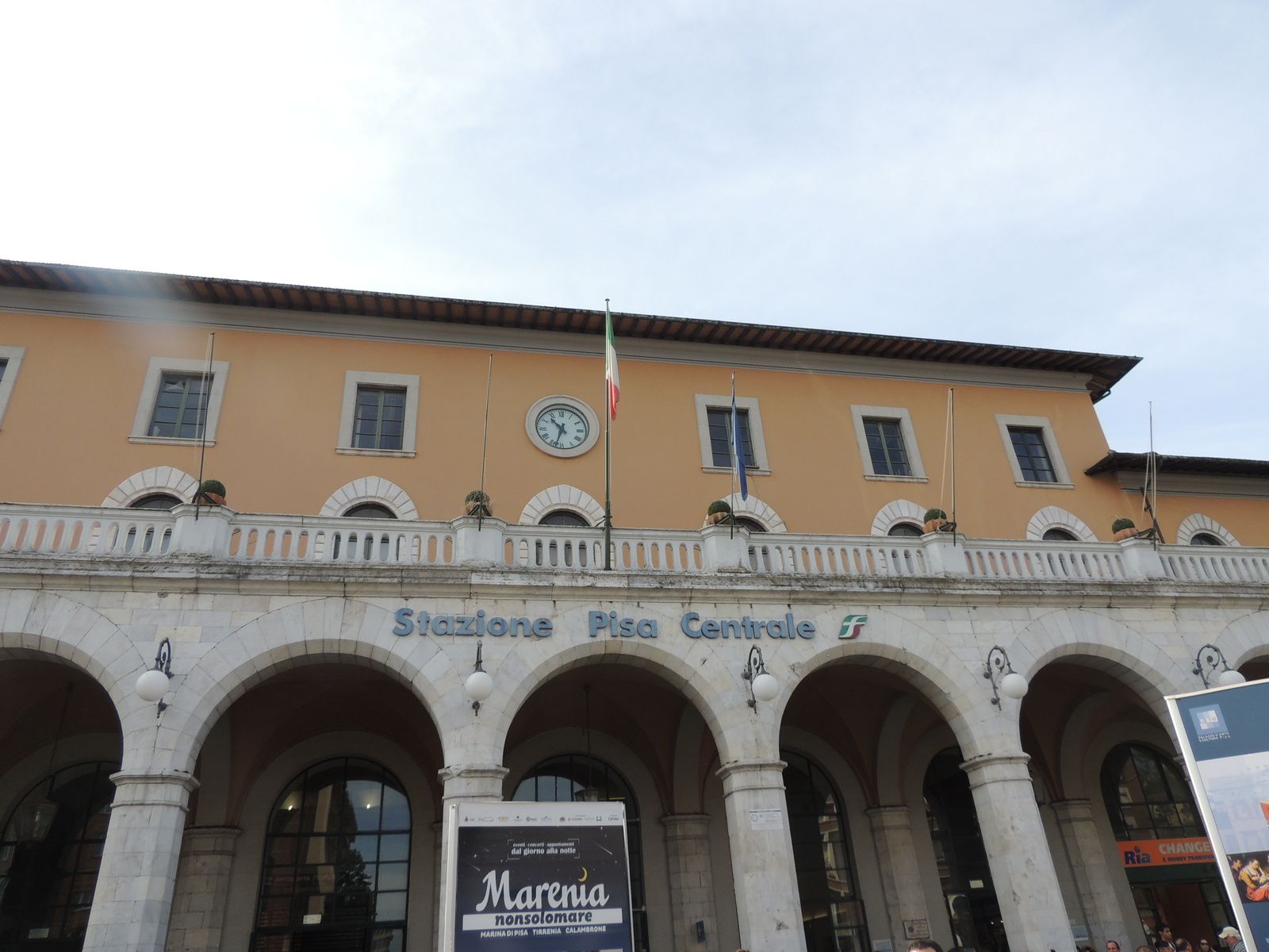 Départ en train pour Pise, 8,70 €/par personne (pas de réduction pour les séniors) 1 train environ toute les heures pour 1 heure de trajet avec la compagnie « Trenitalia » pas besoin de réserver avant. L'arrêt où descendre est "Pisa S.Rossore" qui est juste à côté des lieux touristique comme la Tour de Pise où "Pisa centrale" et ensuite 2km de marche environ, c'est ce que nous avons fait pour entretenir notre forme…