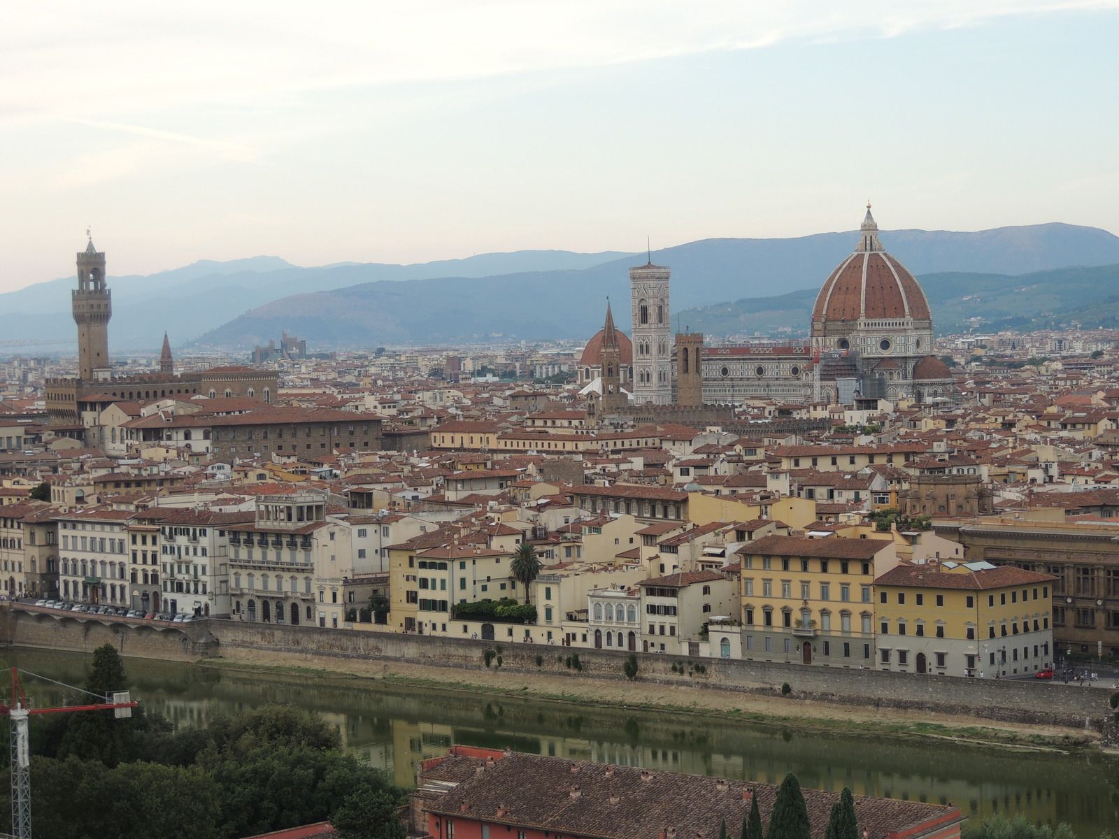 Florence, majestueuse, s'étend sur les deux rives de l'Arno, au pied des versants des Apennins. Ancienne capitale de la Toscane, puis du royaume d'Italie, elle a connu un essor spectaculaire, laissant place à de nouveaux quartiers. Ses anciennes fortifications, devenues aujourd'hui de larges boulevards ceinturant le centre historique, témoignent de son histoire vibrante.