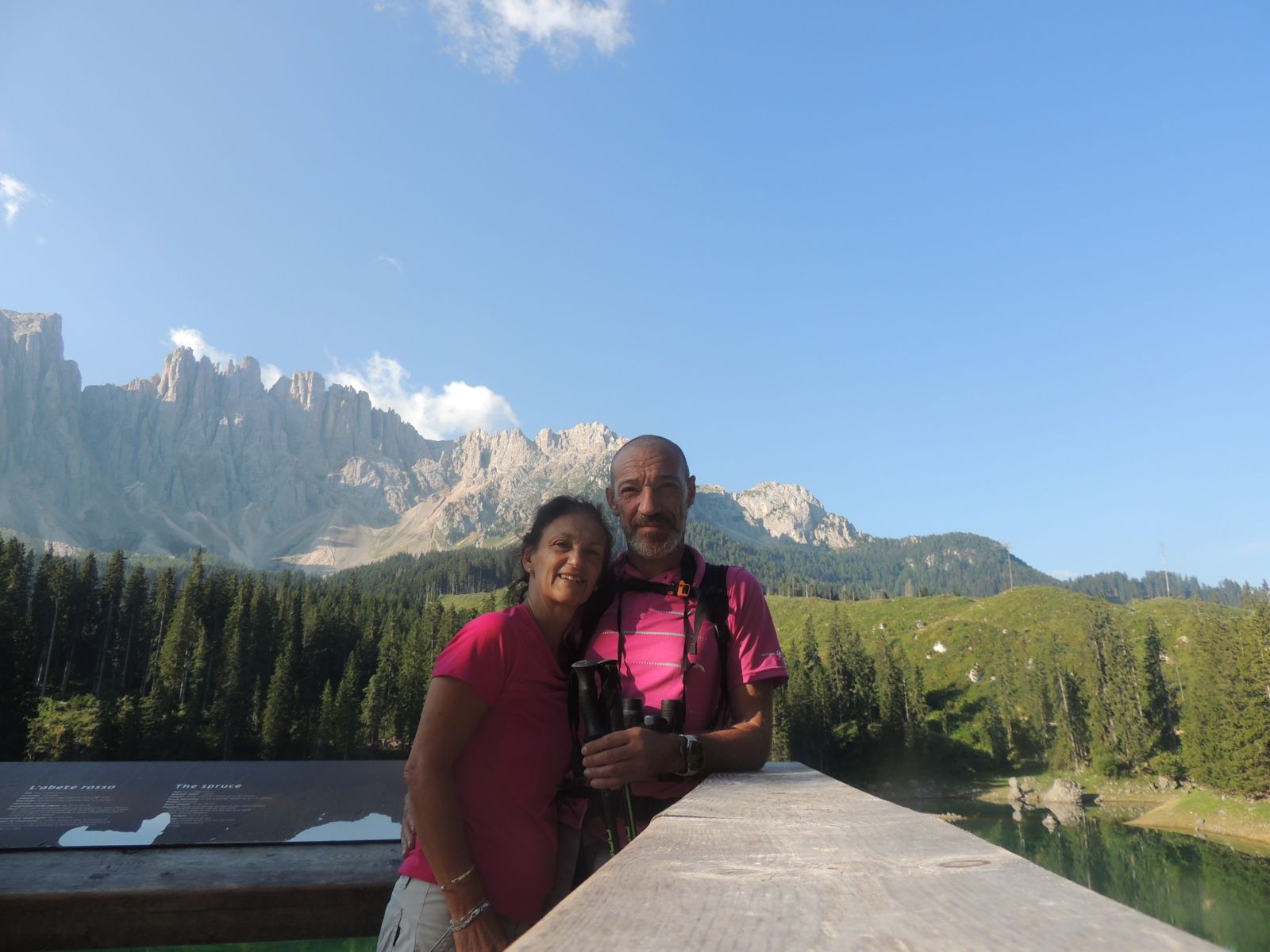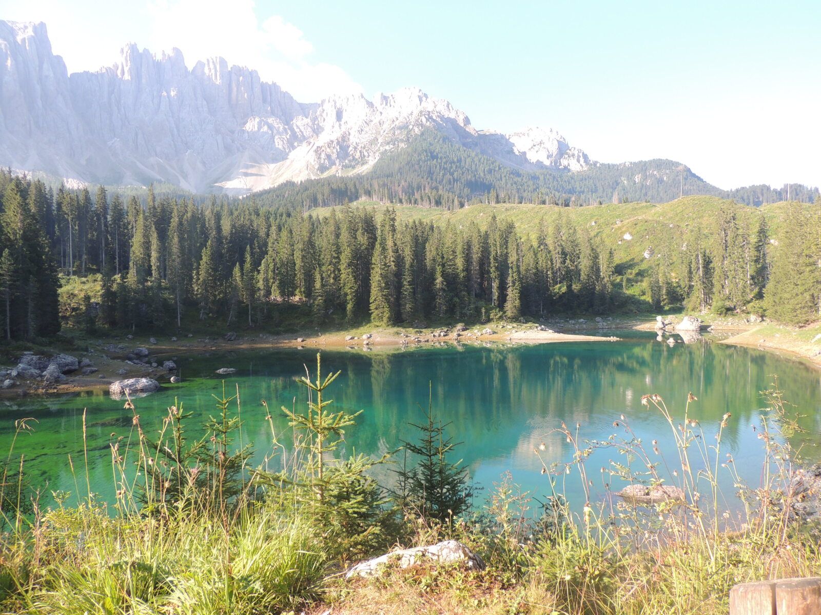Nous avons passé la nuit en bivouac sur le parking proche du lac de Carezza, ce qui nous a permis de profiter du lieu dès les premières lueurs du jour. Au petit matin, le lac était encore plus magique : le calme absolu, les reflets parfaits des montagnes sur l'eau turquoise, et presque personne aux alentours. Un vrai moment suspendu, comme seuls les réveils au coeur de la nature peuvent en offrir.