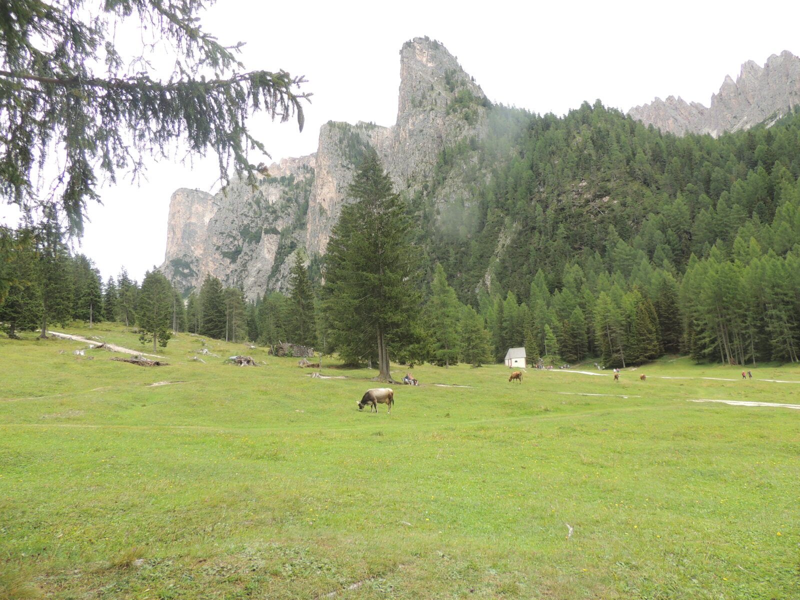L'après-midi, nous avons exploré les environs de notre hôtel. Un petit sentier boisé nous a menés à une prairie paisible, où se dressait une petite église entourée de vaches paisibles. Un moment simple et authentique, loin de l'agitation touristique.