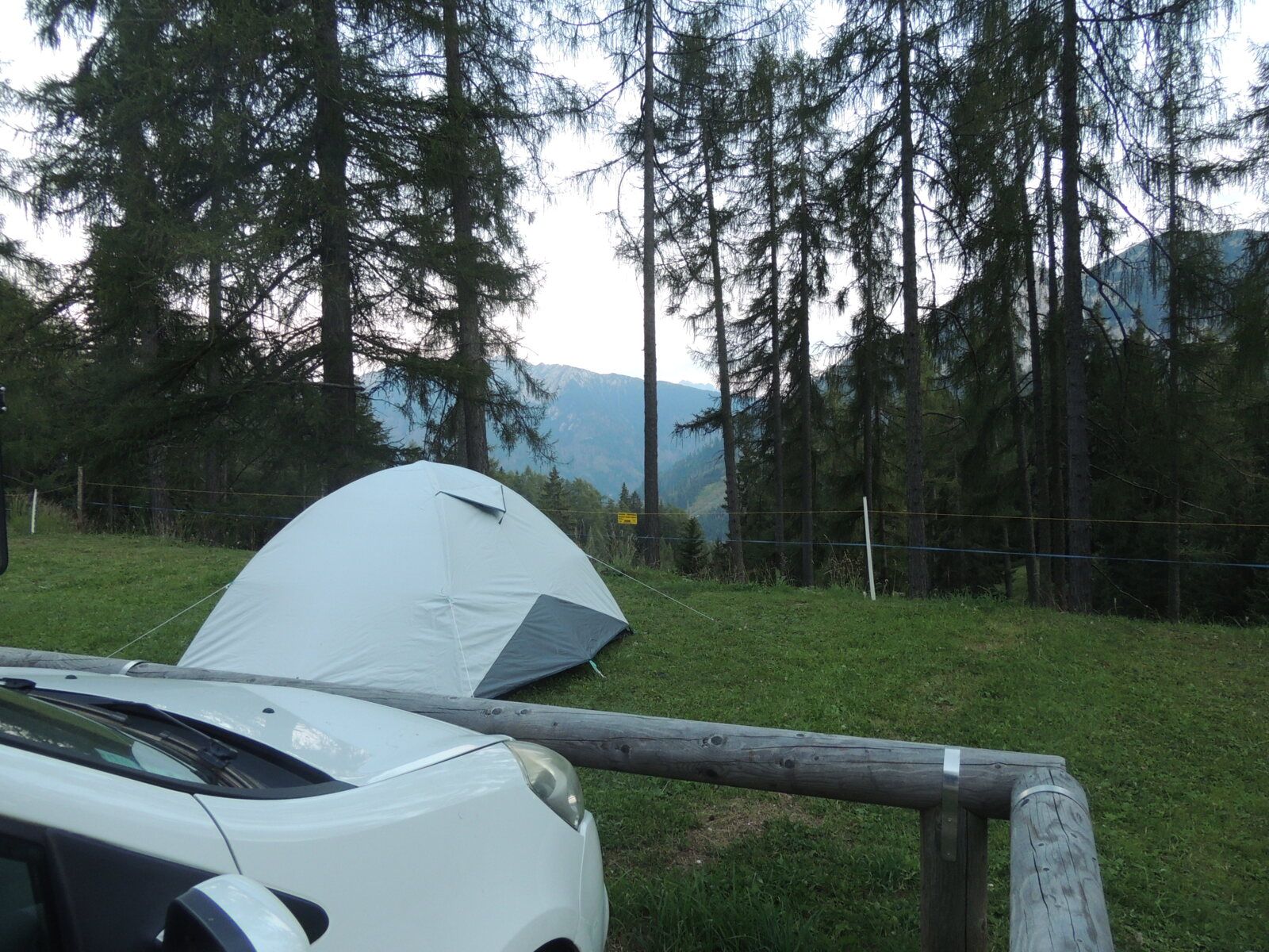 Ce petit espace en bord de route calme, quasiment à plat et situé en dessous du lac nous a accueillis pour notre première nuit en bivouac dans les Dolomites. Entouré d'arbres qui coupent bien le bruit de la route en contre-bas, l'endroit est calme. Rien de bien excitant mais, pour dormir, on ne demande pas plus.