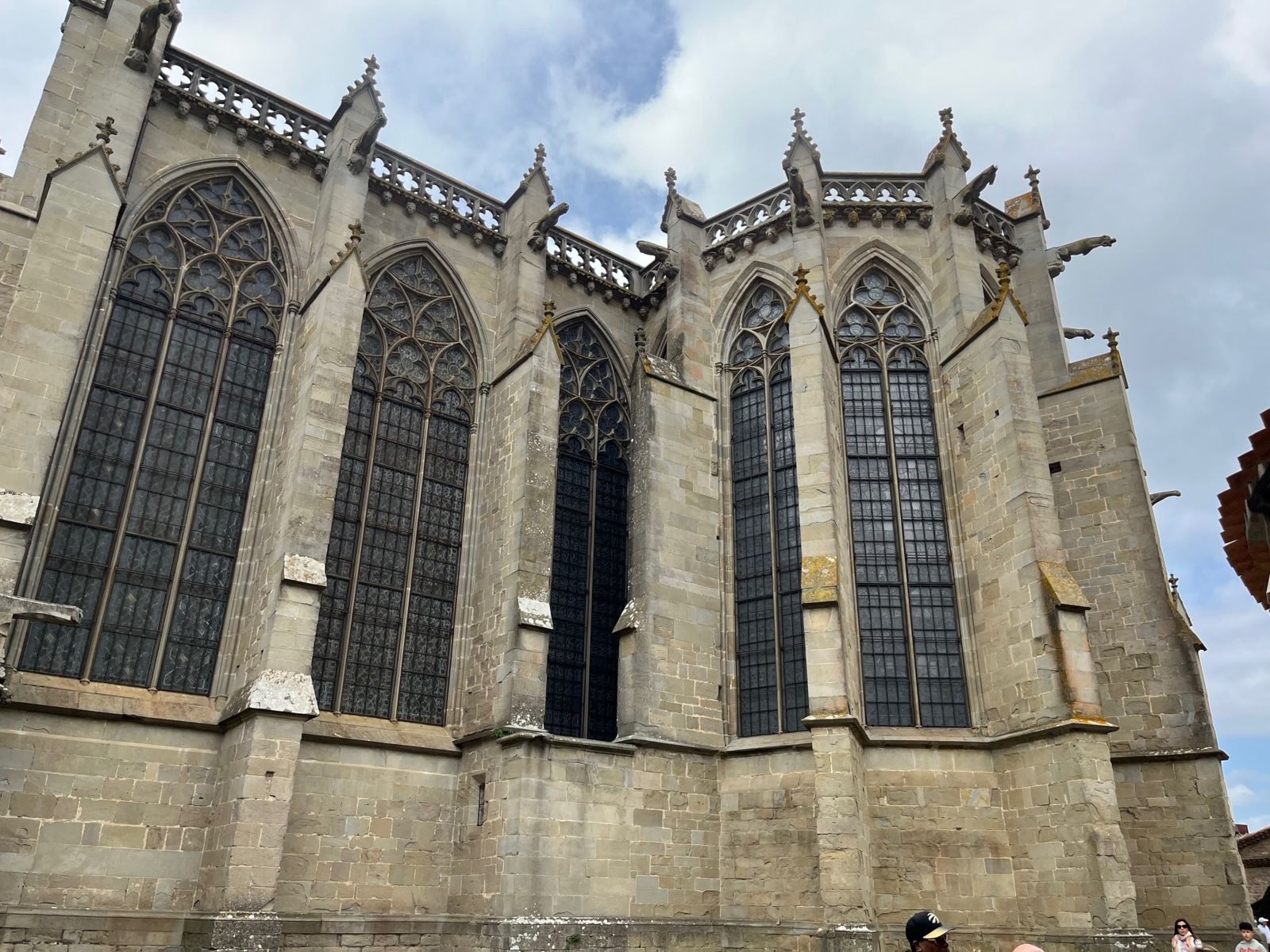 En flânant dans la cité, on est passés devant la basilique Saint-Nazaire, un bel édifice gothique-romane qu'on a pris le temps d'admirer de l'extérieur. Je ne sais plus si on y est entrés, mais elle vaut déjà le détour rien que pour sa façade et ses vitraux. "Je me souviens surtout de la lumière qui passait à travers les vitraux" ou "Elle donnait ine impression de calme au milieu de la foule touristique", même si c'est juste une impression générale.