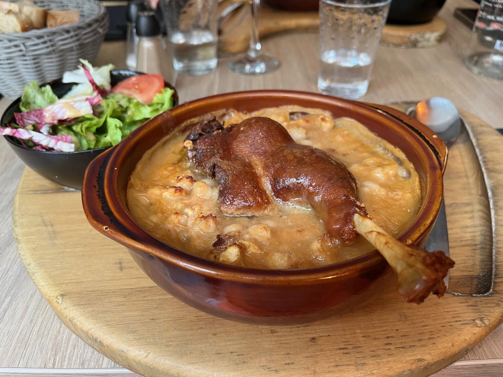 Etape crucial d'un séjour dans le sud-ouest de la France, goûter à la gastronomie locale ! Dans la région c'est le cassoulet qui est à l'honneur ! Le cassoulet est un plat traditionnel régional, à base de haricots blancs, de saucisses et de confit de canard. Il en existe quelques variantes mais la recette traditionnelle se doit de contenir au moins ses 3 ingrédients. Et je préfére vous prévenir tout de suite, ce n'est pas considéré comme plat lèger !
