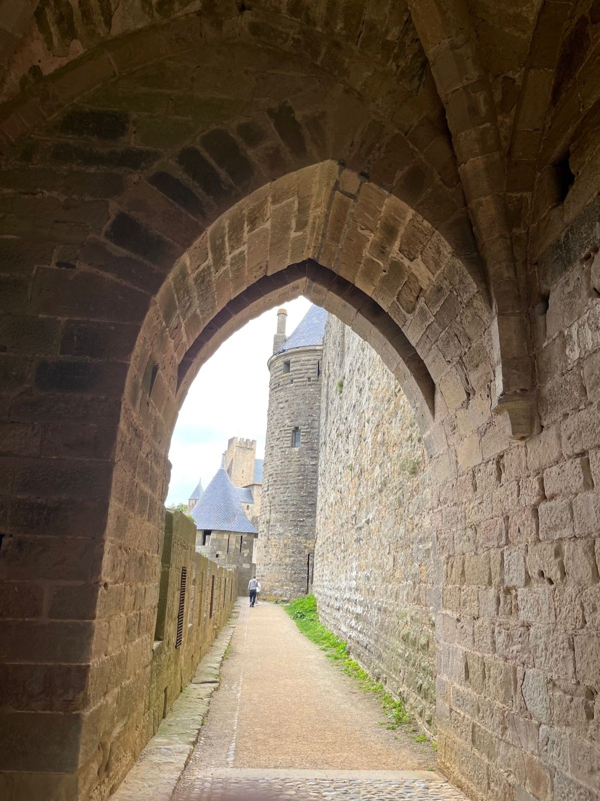 Ne manquez pas la promenade le long des remparts de la cité ! On a commencé notre visite par le passage des Lices, un espace aménagé entre les deux enceintes, qui permet de faire tranquillement le tour de la ville fortifiée. Au XVIIème siècle, ce passage correspondait au quartier pauvre de la cité ; aujourd'hui, c'est un bel endroit pour admirer la Cité sous un autre angle et s'éloigner un peu de la foule. Pour les passionné-és d'architecture, c'est aussi l'occasion de repèrer les différentes étapes de la constructon, de l'époque gallo-romaine à la grande restauration menée par Viollet-le-Duc au XIXe siècle. En bonus, de superbes points de vue sur les alentours s'offrent à vous tout au long du parcours.