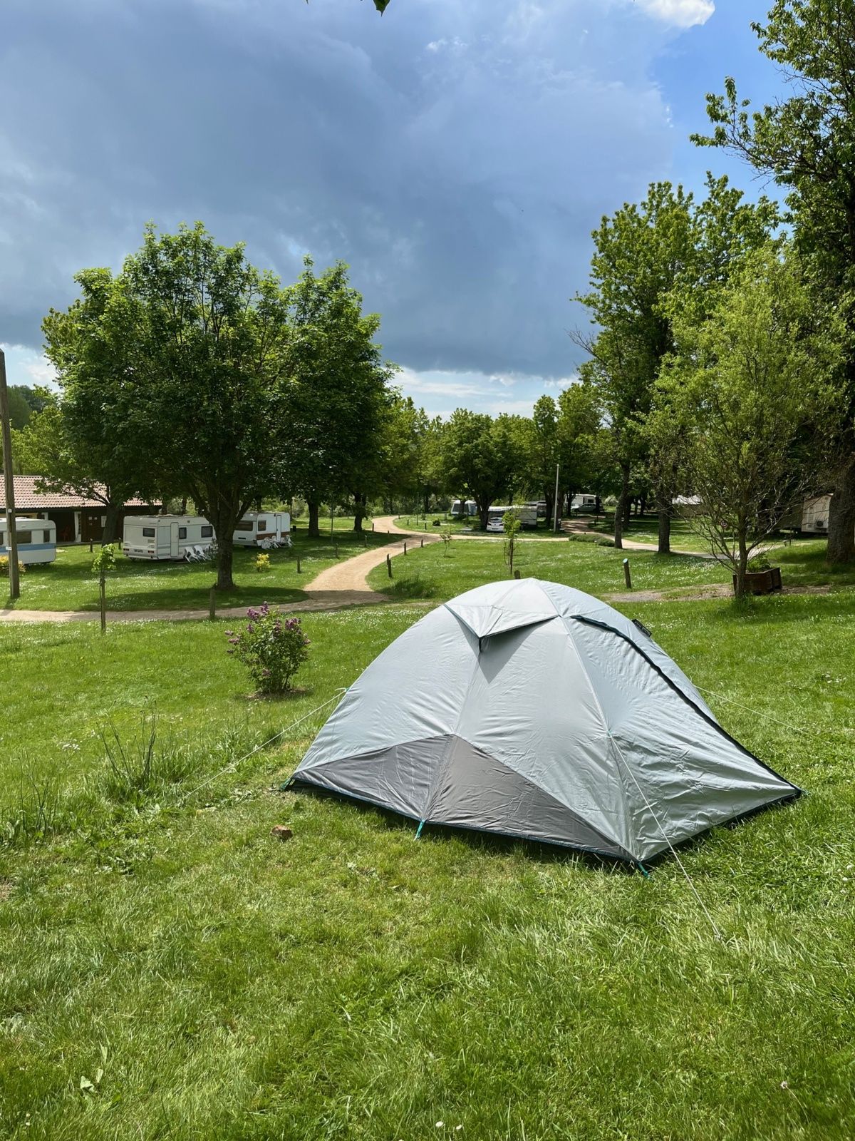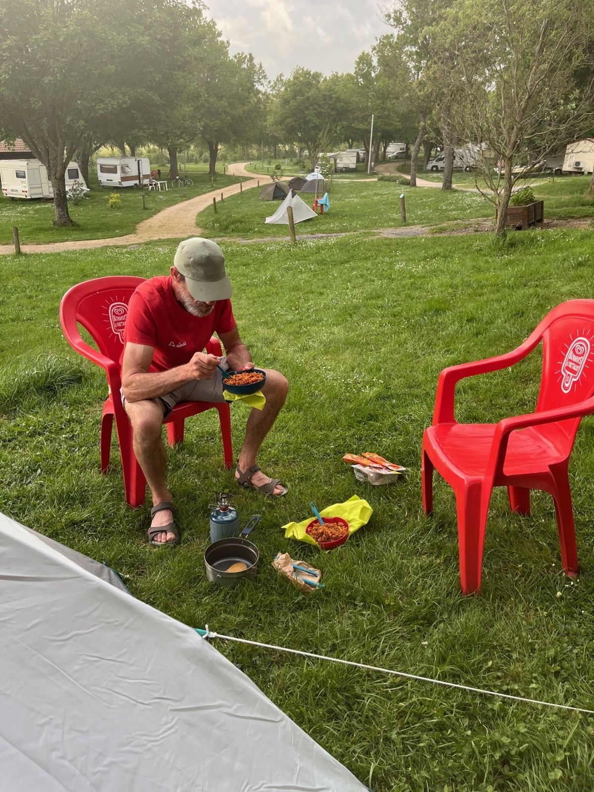 Nous étions installés rapidement, profitant du calme, du chant des oiseaux, et de la nature environnante. Le lieu était simple, propre, et idéal pour une étape à pied. Le soleil était encore bien présent à notre arrivée, et l'ambiance globale donnait l'impression d'un début de parenthèse douce avant l'agitation de la féria à venir.