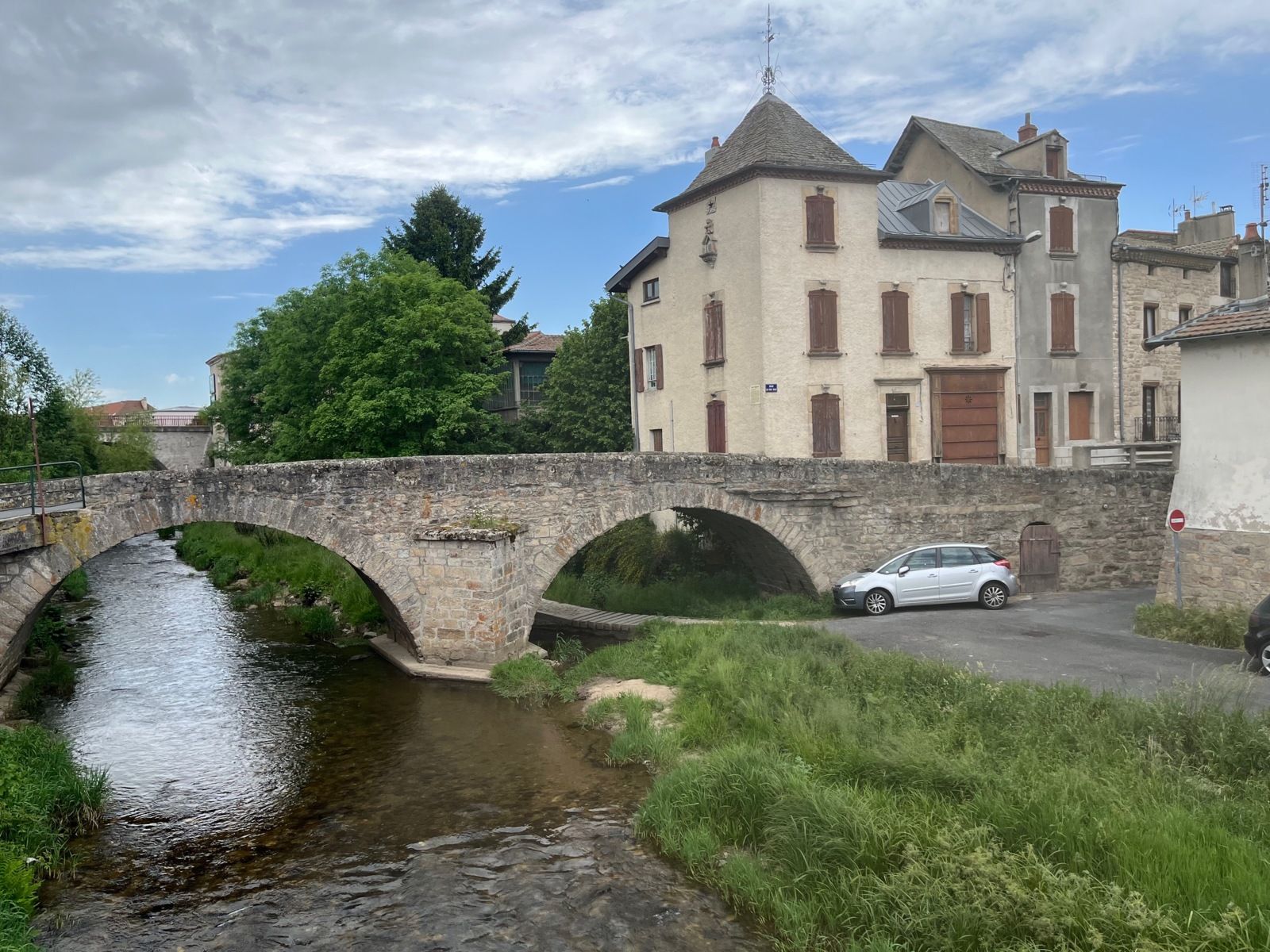 Une fois la tente installée, nous sommes repartis à pied flâner dans le centre de Langogne. Cette petite ville traversée par l'Allier, sur le chemin de Stevenson (GR70), a un charme discret mais authentique. On y trouve de jolies ruelles, quelques maisons anciennes, et surtout une atmosphère paisible, un peu hors du temps.