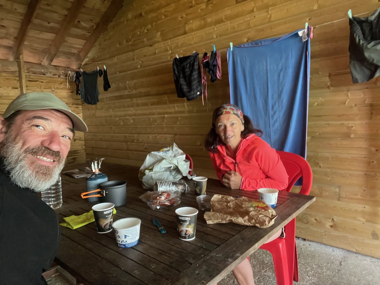 Le week-end touche à sa fin, le lendemain matin, malgré l'orage de la veille, nous avons pris le temps de savourer notre petit déjeuner tranquillement sur le réchaud du camping.
